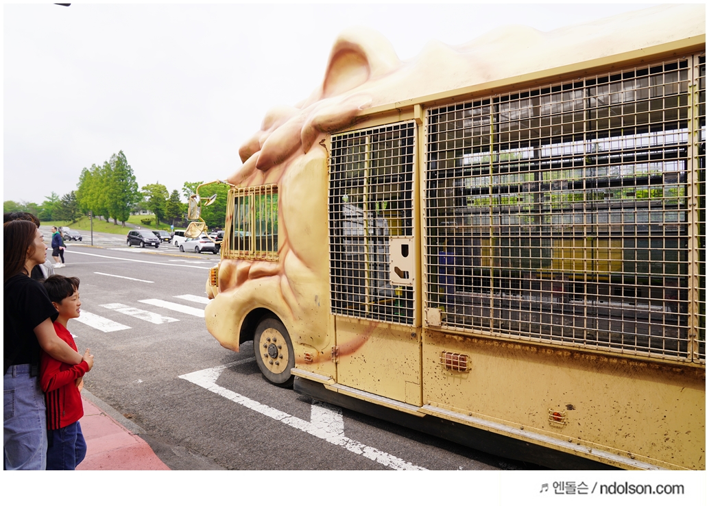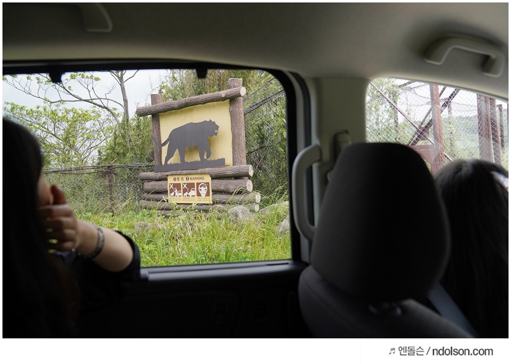 동물원 정글버스를 타기 전에 앞에서 사진을 찍었습니다.