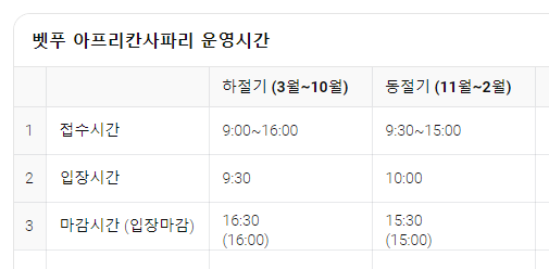 - 포함사항: 1일 버스이용료, 가이드, 사파리 입장료