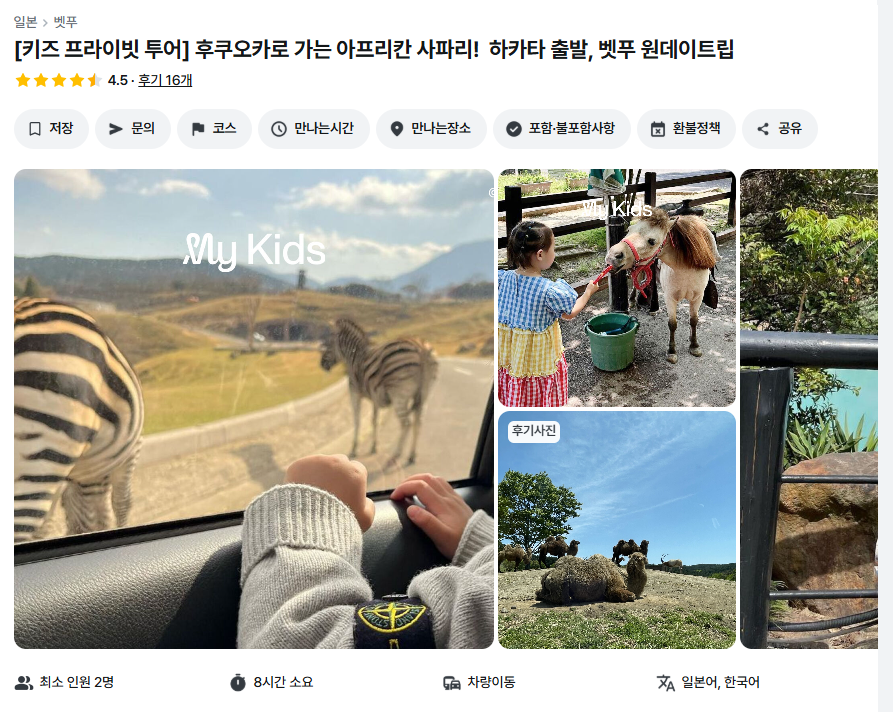 지금 마이리얼트립에서 후쿠오카 사파리 투어 간편하게 예약하고, 여유로운 가족 여행을 시작해보세요. 🐾🚌🦁