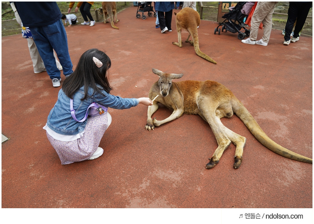 캥거루를 눈앞에 직접 볼 수 있어 좋았는 데, 먹이를 주면 잘 먹습니다.