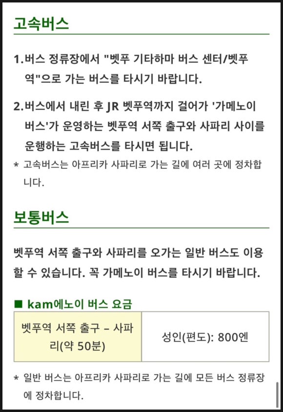 후쿠오카 동물원 벳푸 아프리칸사파리 가는 방법