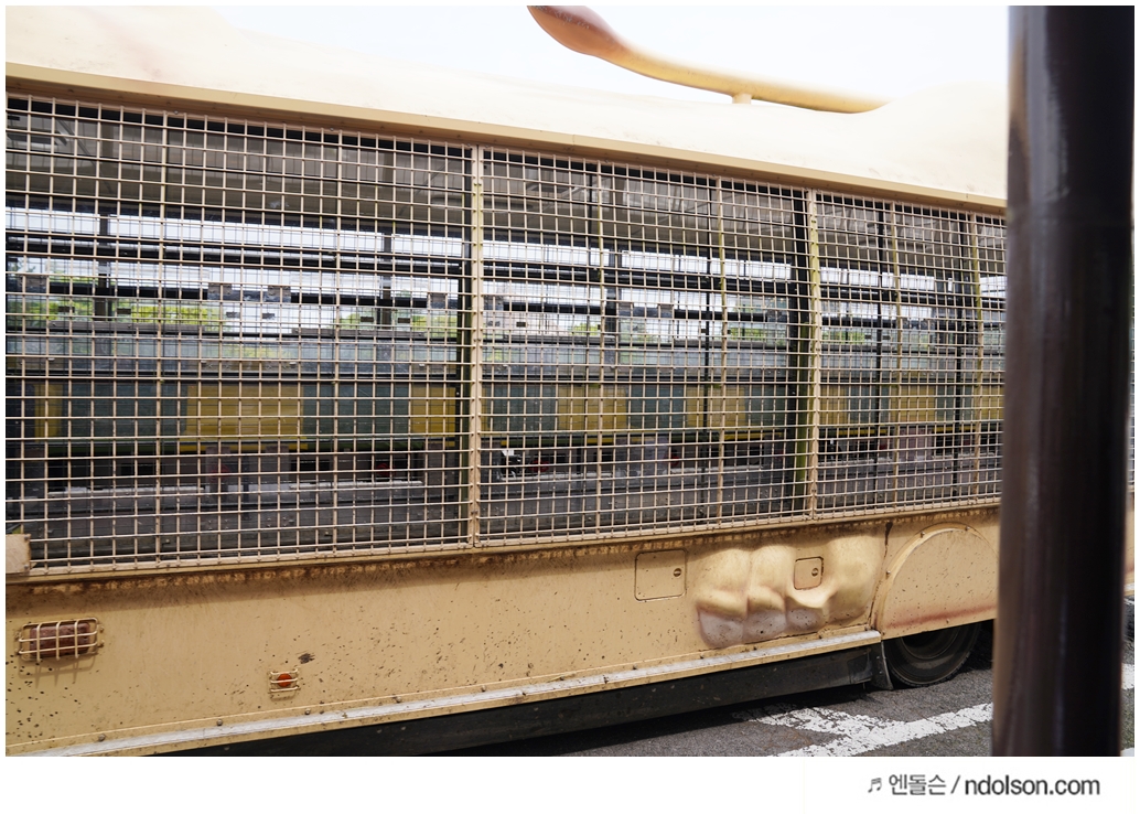 정글버스가 다니는 길로 들어가려고 하면, 가이드 차량이 와서 지키고 가지 못하게 막아 줍니다.
