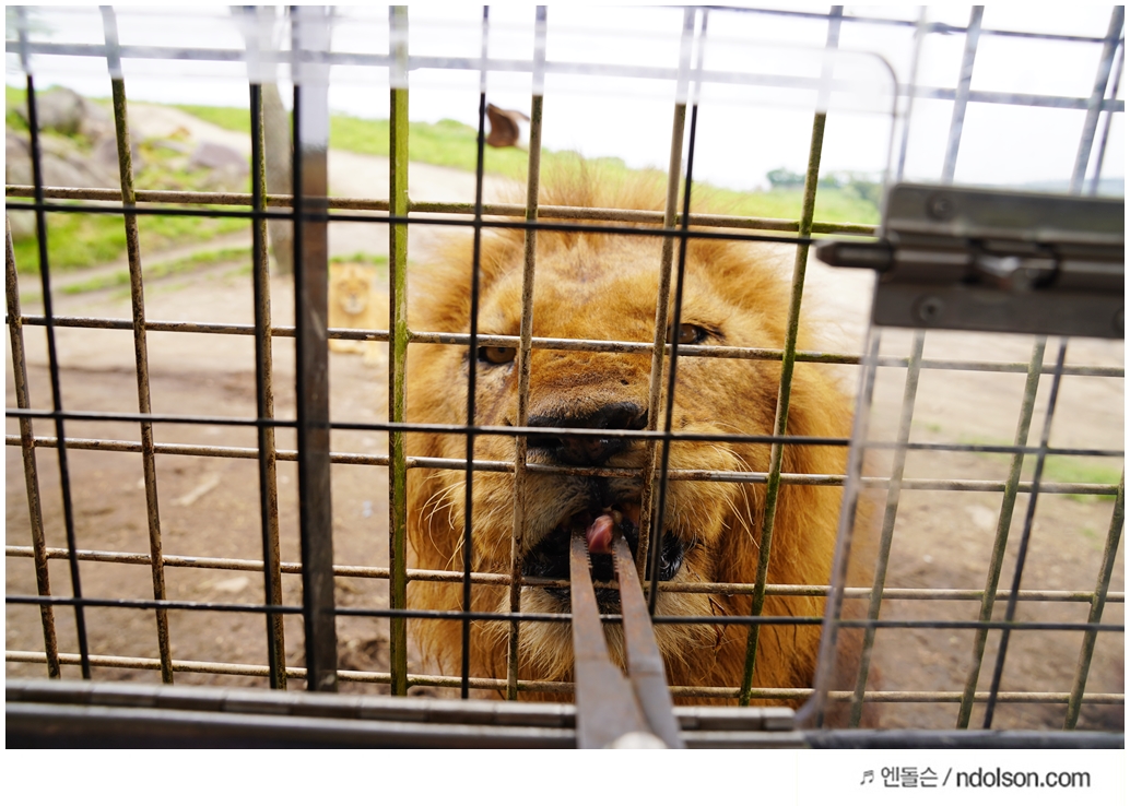 사자가 강아지 같습니다. 혀를 낼름 거립니다. 맹수를 눈앞에서 볼 수 있다니 무섭기도 하면서도 귀엽습니다.