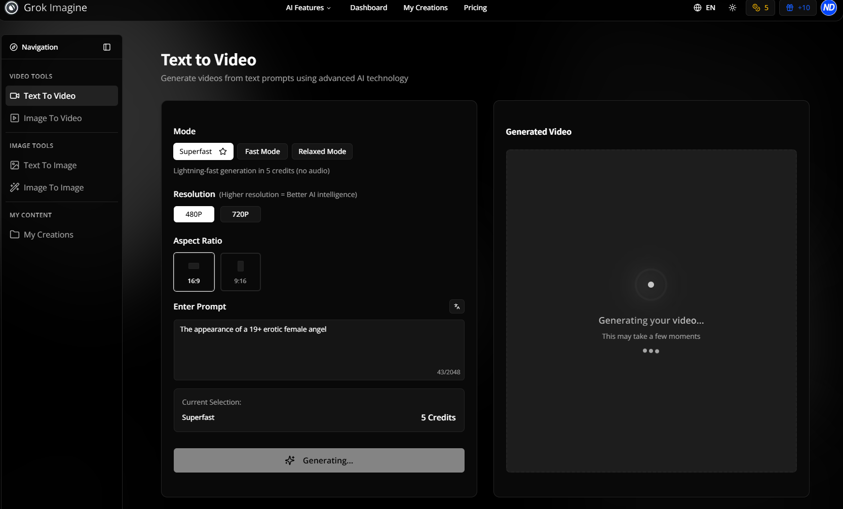 Grok Imagine는 AI의 검열이 없습니다. Grok Imagine 크리에이터의 작업 방식을 혁신하는 선도적인 AI 기반 비주얼 제작 플랫폼입니다. Grok Imagine을 사용하면 고품질 이미지와 사운드가 포함된 6초 동영상을 생성할 수 있습니다. Grok Imagine은 고급 Aurora 엔진 기술을 사용하여 여러 영역에서 사실적인 결과물을 제공합니다.