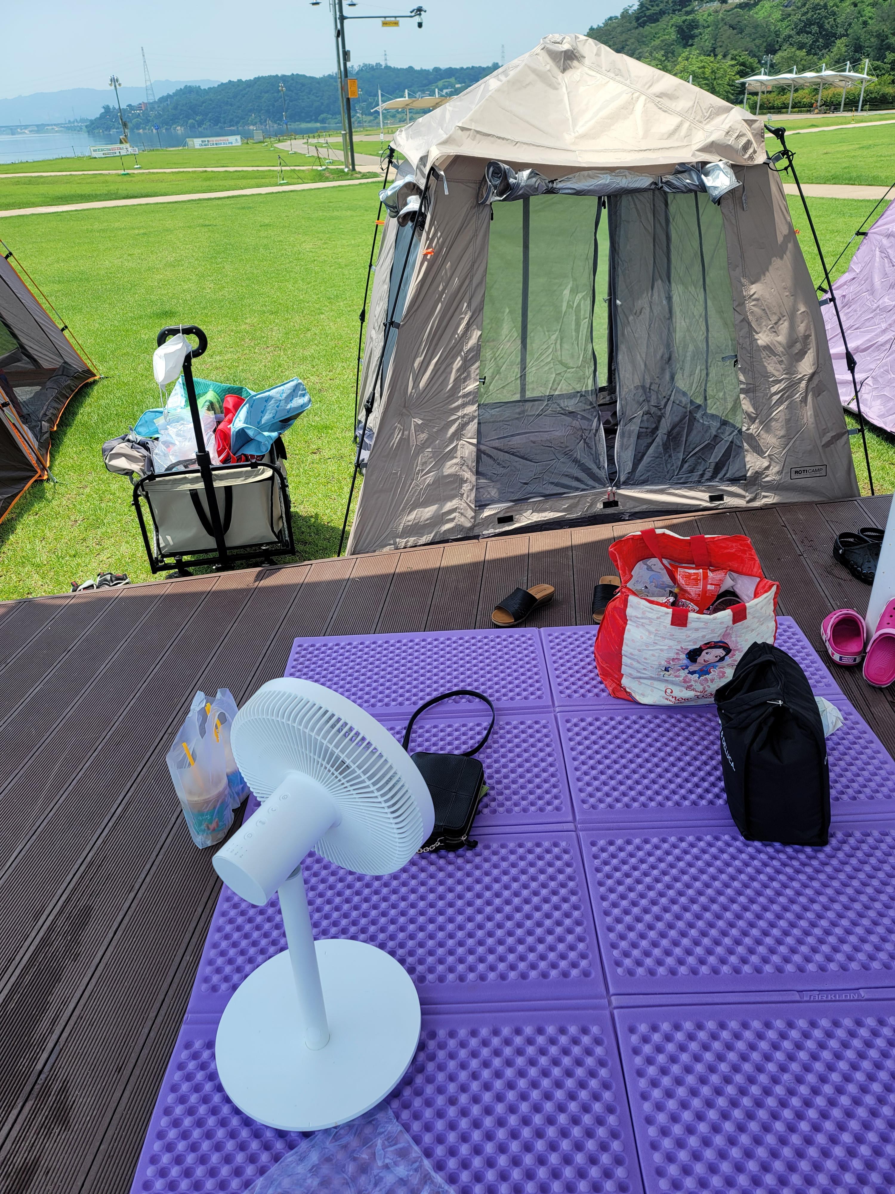 이번에 여름에 캠핑처럼 간단히 한강 물놀이를 다녀왔습니다. 한강 텐트에서 치맥하면 너무 좋죠. 그런데 요즘 날씨가 좀 덮나요?