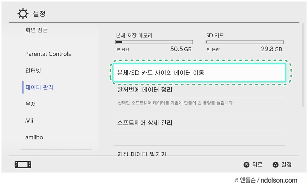 닌텐도 스위치의 SD카드에 본체의 데이터를 모두 복사해서 백업할 수 있습니다.
