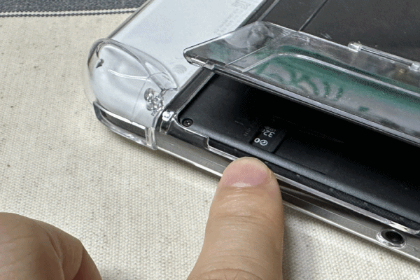 SD카드를 닌텐도 스위치의 스탠드 열어보면 SD카드를 넣는 슬롯이 있습니다. SD카드를 넣어 보세요.