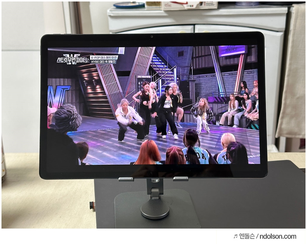 스우파2 동영상을 재생해 보았는데, 화면이 커서 춤 동작을 자세히 볼 수 있었습니다. 노트북 켜지 않고도 레노버 12.7인치 태블릿으로 충분하네요! 고화질 디스플레이로 춤꾼들의 표정과 감정까지 생생하게 느낄 수 있었습니다.