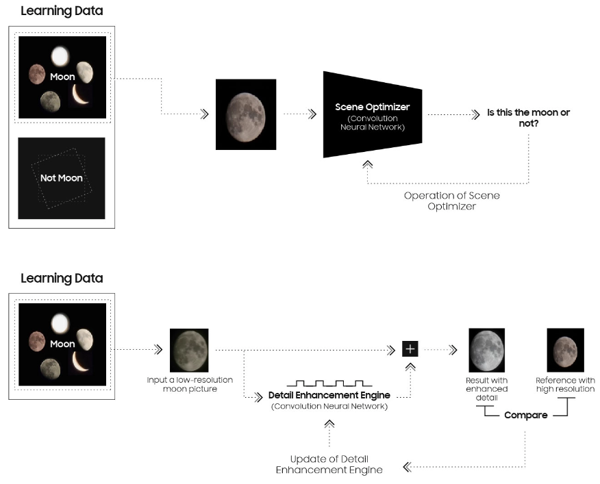 달 촬영에서의 이러한 기술의 적용은 인상적입니다. 사용자가 달을 촬영할 때, 갤럭시 디바이스는 달의 밝기를 인식하고, 적절한 순간에 촬영 버튼을 누르면 카메라가 여러 단계를 거쳐 밝고 선명한 달 이미지를 생성합니다. 이 과정에서 장면 최적화 기능이 AI 처리를 통해 이미지의 디테일을 향상하는 역할을 합니다.