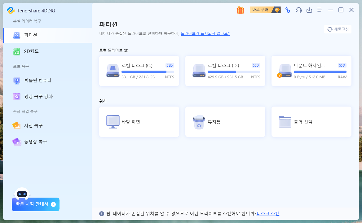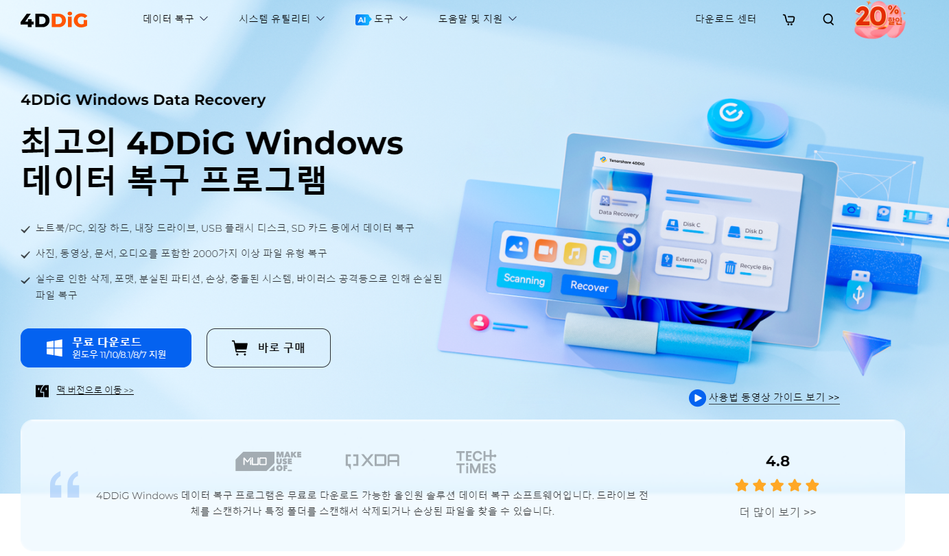 [공식] Tenorshare 4DDiG Windows 데이터 복구: 올인원 데이터 복구 및 복원 솔루션