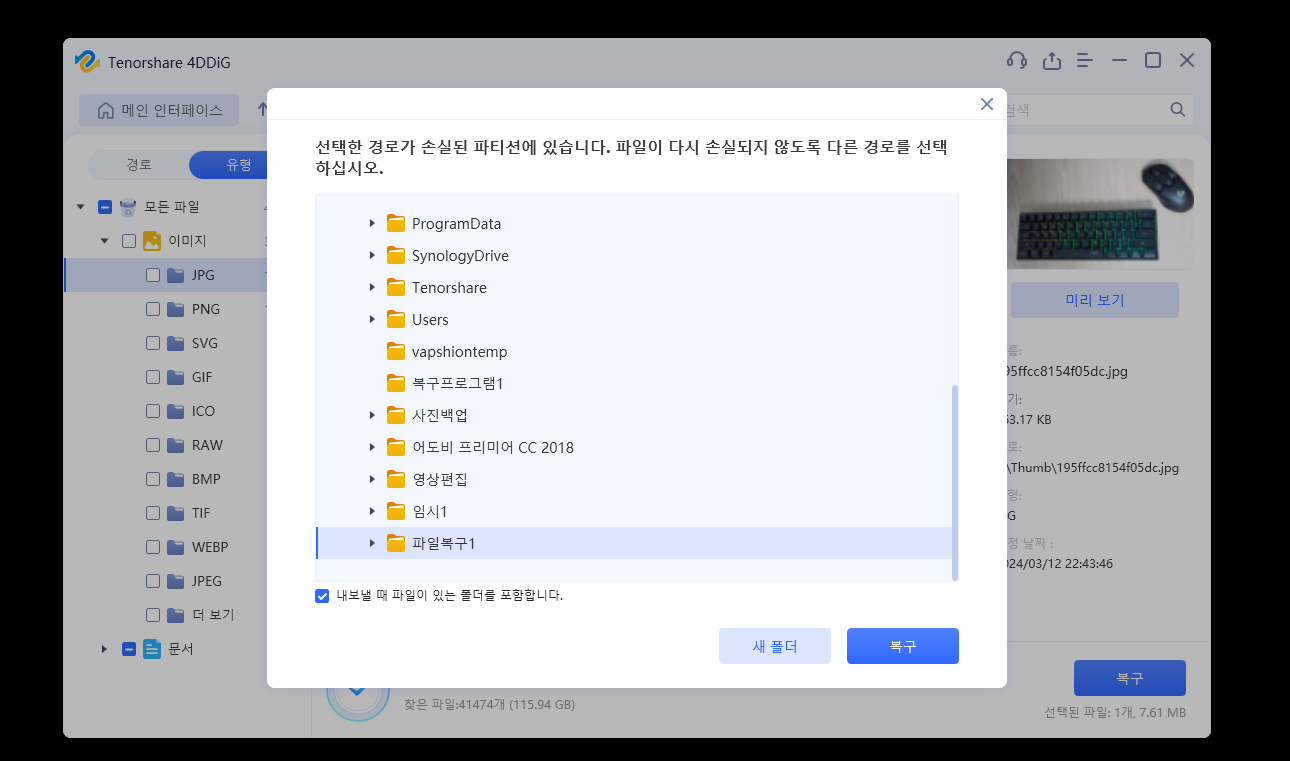 손쉬운 윈도우 컴퓨터 휴지통 비움 된 삭제 파일 복구 하는 4DDiG 프로그램