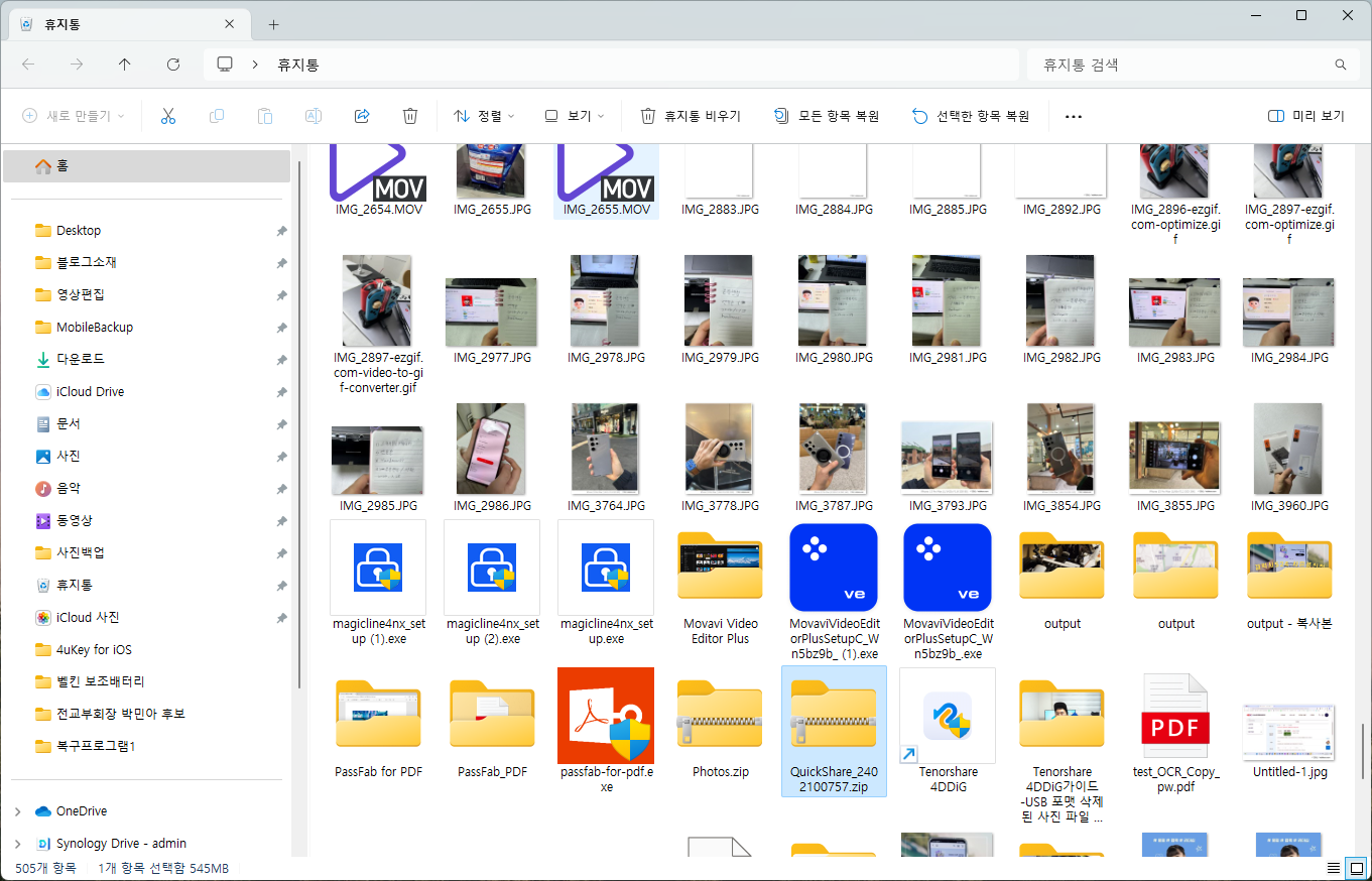 오피스 업무를 하다가 실수로 파일을 삭제해도 동영상, 엑셀, 파워포인트, 워드, 사진 등 각종 파일은 휴지통에 있습니다.