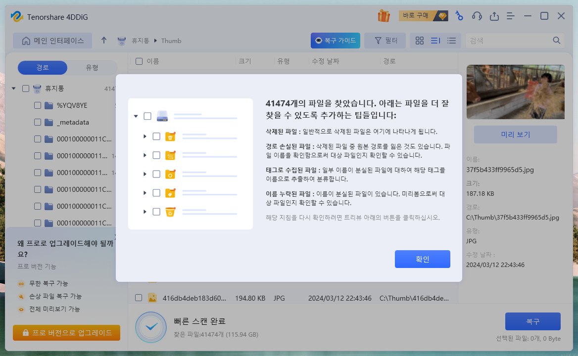 손쉬운 윈도우 컴퓨터 휴지통 비움 된 삭제파일 복구 하는 방법! 외장하드 USB 4DDiG 복구 프로그램