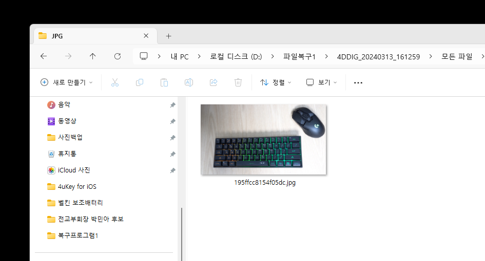 사진 복구도 해보려고 미리 보니, 키보드 마우스 사진이네요.